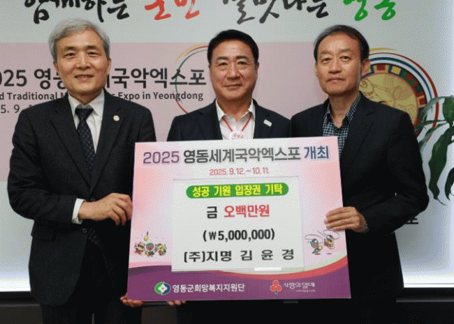 [NWS¹æ¼Û=Çѽ¸ñ ±âÀÚ] ¢ßÁö¸íÀº 21ÀÏ ¡®2025 ¿µµ¿¼¼°è±¹¾Ç¿¢½ºÆ÷¡¯ ÀÔÀå±Ç ±¸¸Å Áö¿øÀ» À§ÇÑ ¼º±Ý 500¸¸¿øÀ» ¿µµ¿±º¿¡ ±âŹÇß´Ù. À̹ø ±âŹÀº Áö¿ª¿¡¼­ ¿­¸®´Â ´ë±Ô¸ð ¹®È­Çà»çÀÇ ¼º°øÀûÀÎ °³ÃÖ¸¦ ±â¿øÇϰí, ´õ ¸¹Àº À̵éÀÌ ±¹¾ÇÀÇ ¾Æ¡¦