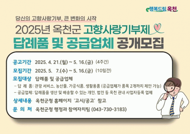 [»çȸ] ¿Áõ±º °íÇâ»ç¶û±âºÎÁ¦ ´ä·Êǰ ¹× °ø±Þ¾÷ü Ãß°¡ °ø¸ð |2025. 04.21