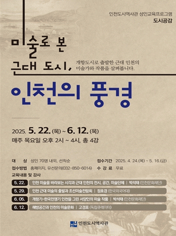 [NWS¹æ¼Û=Çѽ¸ñ ±âÀÚ]ÀÎõ±¤¿ª½Ã ÀÎõµµ½Ã¿ª»ç°üÀº ¿À´Â 5¿ù 22ÀϺÎÅÍ ÀϹÝÀÎ ´ë»ó ±³¾ç °­Á 'µµ½Ã°ø°¨-¹Ì¼ú·Î º» ±Ù´ë µµ½Ã, ÀÎõÀÇ Ç³°æ'À» ¿î¿µÇÑ´Ù°í ¹àÇû´Ù. À̹ø °­Á´ °³Ç× µµ½Ã·Î Ãâ¹ßÇÑ ÀÎõÀÇ Ç³°æÀ» ´ãÀº ±¹³»¿Ü È­°¡µéÀÇ¡¦