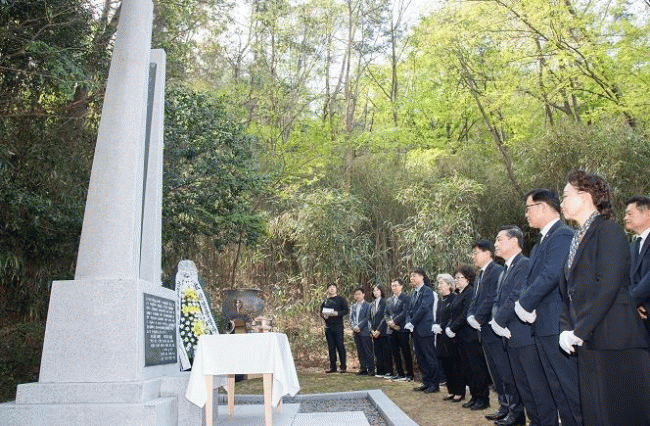 [NWS¹æ¼Û=Çѽ¸ñ ±âÀÚ]ºÎ»ê½Ã ±ÝÁ¤±¸´Â Á¦65ÁÖ³â 4¡¤19Çõ¸íÀ» ±â³äÇÏ¿©, ³²»êµ¿ ¼ÒÀç ½ÅÁ¤À¶ ¿­»ç Ã߸ðºñ ¾Õ¿¡¼­ ½ÅÁ¤À¶ ¿­»ç Ã߸ð½ÄÀ» °ÅÇàÇß´Ù°í ¹àÇû´Ù. À̳¯ Ã߸ð½Ä¿¡´Â À±ÀÏÇö ±ÝÁ¤±¸Ã»ÀåÀ» ºñ·ÔÇÏ¿© À¯°¡Á·, ¹éÁ¾Çå ±¹È¸ÀÇ¿ø, ±¸ÀÇ¡¦