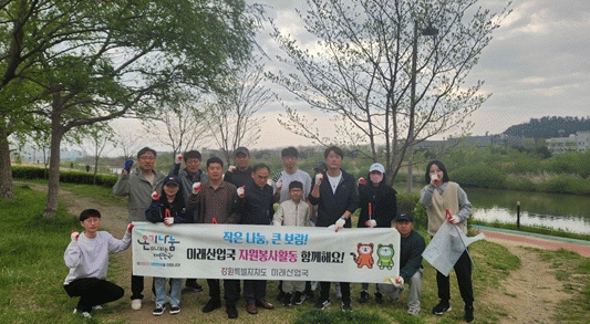 [NWS¹æ¼Û=Çѽ¸ñ ±âÀÚ]°­¿øÆ¯º°ÀÚÄ¡µµ ¹Ì·¡»ê¾÷±¹ Á÷¿ø 20¿© ¸íÀº, 4¿ù 19ÀÏ °­¸ª ³²´ëõ ÀÏ¿ø¿¡¼­ ȯ°æÁ¤È­ ºÀ»çȰµ¿À» ½Ç½ÃÇß´Ù. À̹ø Ȱµ¿Àº ¼ÒÅë°ú °ø°¨, ¹è·Á¿Í Çù·ÂÀÇ Á¶Á÷ ºÐÀ§±â¸¦ Á¶¼ºÇϰí, ¹Ì·¡»ê¾÷±¹ Á÷¿øµéÀÌ ÀÏÇÏ¸ç »ýȰÇÏ¡¦