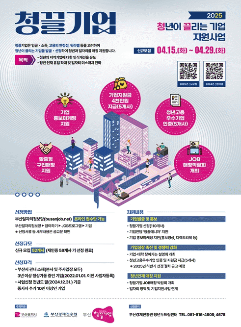 [°æÁ¦] ºÎ»ê½Ã, 'û²ø(û³âÀÌ ²ø¸®´Â)±â¾÷ ¹ß±¼¡¤¸ÅĪ Áö¿ø»ç¾÷' Âü¿©±â¾÷ ¸ðÁý |2025. 04.21