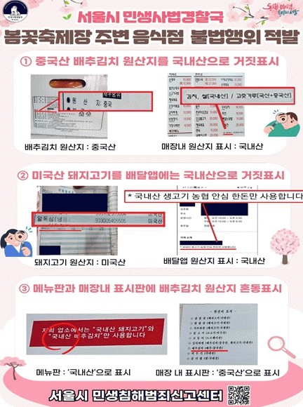 [»çȸ] ¼­¿ï½Ã, º½²É ÃàÁ¦Àå ÁÖº¯ ¿ø»êÁö À½½ÄÁ¡ °ÅÁþÇ¥½Ã µî 12°³¼Ò Àû¹ß |2025. 04.20