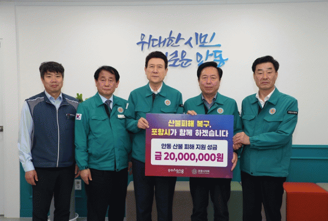 [NWS¹æ¼Û=Çѽ¸ñ ±âÀÚ]¾Èµ¿½ÃÀÇ ´ëÇü»êºÒ ÇÇÇØ º¹±¸¸¦ À§ÇØ ÀÌ¿ô ÁöÀÚüÀÎ Æ÷Ç×½Ã¿Í ¿¹Ãµ±ºÀÌ ¿ÂÁ¤ÀÇ ¼Õ±æÀ» º¸³Â´Ù. 4¿ù 18ÀÏ À̰­´ö Æ÷Ç×½ÃÀå°ú ±èÀϸ¸ ½ÃÀÇȸ ÀÇÀå, °ø¹«¿ø³ëÁ¶, ÀÚ¿øºÀ»ç¼¾ÅÍ, Çâ¿ìȸ °ü°èÀÚ µîÀ¸·Î ±¸¼ºµÈ ¹æ¹®´ÜÀÌ¡¦