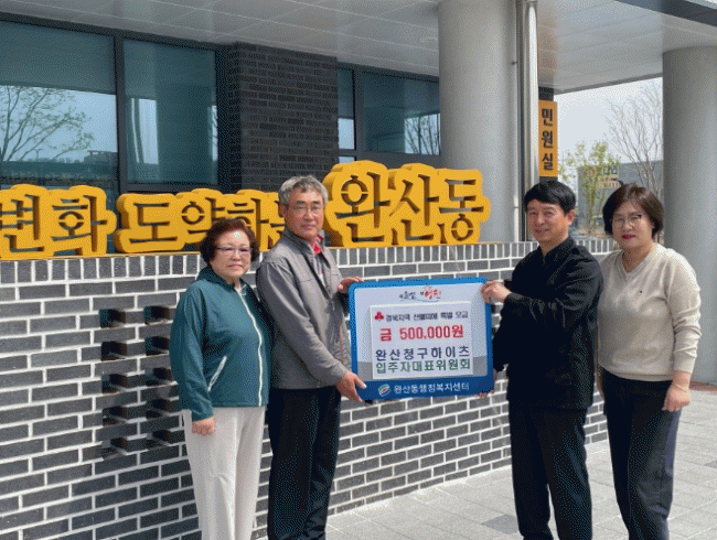 [NWS¹æ¼Û=Çѽ¸ñ ±âÀÚ]¿µÃµ½Ã ¿Ï»êµ¿Àº 18ÀÏ °ü³» ¿Ï»êû±¸ÇÏÀÌÃ÷ ¾ÆÆÄÆ® ÀÔÁÖÀÚ´ëÇ¥ À§¿øÈ¸¿¡¼­ »êºÒ ÇÇÇØ º¹±¸¸¦ À§ÇÑ ¼º±Ý 50¸¸¿øÀ» ±âºÎÇß´Ù°í ¹àÇû´Ù. À̹ø ¼º±ÝÀº ¡®°æºÏ»çȸº¹Áö°øµ¿¸ð±Ýȸ °æºÏÁö¿ª »êºÒÇÇÇØ Ưº°¸ð±Ý¡¯ »ç¾÷¿¡ ¡¦