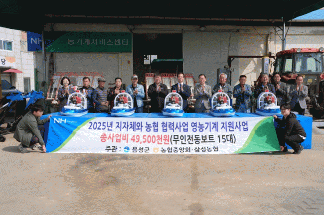 [NWS¹æ¼Û=Çѽ¸ñ ±âÀÚ]À½¼º±ºÀº Áö³­ 17ÀÏ »ï¼º³óÇù ´öÁ¤ÁöÁ¡¿¡¼­ À½¼º±º°ú NH³óÇù À½¼º±ºÁöºÎ, »ï¼º³óÇù°ú Çù·Â»ç¾÷À¸·Î ¸¶·ÃÇÑ ¹«ÀÎÀüµ¿º¸Æ® 15´ë¸¦ ³ó°¡¿¡ Àü´ÞÇß´Ù. À̳¯ Àü´Þ½Ä¿¡´Â Á¶º´¿Á ±º¼ö, °íÀ±Á¾ ³óÇùÀ½¼º±ºÁöºÎÀå, Á¤ÀÇö¡¦