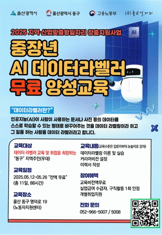 [NWS¹æ¼Û=Çѽ¸ñ ±âÀÚ]¿ï»ê µ¿±¸°¡ Áö¿ª¿¡¼­´Â ÃÖÃÊ·Î ÀΰøÁö´É ½Ã´ëÀÇ »õ·Î¿î ÀÏÀÚ¸®·Î °¢±¤¹Þ°í ÀÖ´Â ¡®AI µðÁöÅÐ µ¥ÀÌÅͶ󺧷¯ ¾ç¼º ±³À°¡¯À» ½ÃÀÛÇÑ´Ù. µ¿±¸´Â ¿ï»ê±¤¿ª½Ã °ø¸ð»ç¾÷ÀÎ 2025³â Áö¿ª?»ê¾÷ ¸ÂÃãÇü ÀÏÀÚ¸®Ã¢Ãâ Áö¿ø»ç¾÷¡¦