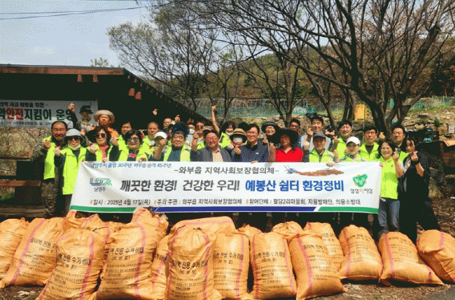 [NWS¹æ¼Û=Çѽ¸ñ ±âÀÚ]³²¾çÁֽô Áö³­ 17ÀÏ, ¿ÍºÎÀ¾ Áö¿ª»çȸº¸ÀåÇùÀÇü°¡ ¿¹ºÀ»ê µî»ê·Î ÀÔ±¸ ¹× º¢³ª¹« ½°ÅÍ ÀÏ´ë¿¡¼­ ȯ°æ Á¤ºñ Ȱµ¿À» ÁøÇàÇß´Ù°í 18ÀÏ ¹àÇû´Ù. À̹ø Á¤ºñ Ȱµ¿Àº ¿ÍºÎÀ¾ Áö¿ª»çȸº¸ÀåÇùÀÇü ÁÖ°üÀ¸·Î ÁøÇàµÅ ¡â¿ÍºÎ¡¦