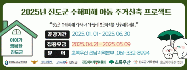 [»çȸ] ¡°¼öÇØ ÇÇÇØ ´ÙÀÚ³à °¡Á¤¿¡ »õ º¸±ÝÀÚ¸®¸¦¡±.. Áøµµ±º µî ¸ð±Ý ½ÃÀÛ |2025. 04.18