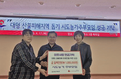 [NWS¹æ¼Û=Çѽ¸ñ ±âÀÚ] ¿ËÁø±º ½Ãµµ³ó°¡ÁֺθðÀÓÀº Áö³­ 17ÀÏ, ¿µ³²±Ç »êºÒÇÇÇØ Áö¿ªÀÇ ÀÌÀç¹ÎÀ» À§ÇÑ ¼º±Ý 100¸¸¿øÀ» ÀÎõ»çȸº¹Áö°øµ¿¸ð±Ýȸ¿¡ ±âºÎÇß´Ù°í ¹àÇû´Ù. ¹é³ª¿µ ½Ãµµ³ó°¡ÁֺθðÀÓ È¸ÀåÀº ¡°À̹ø ¼º±ÝÀº ÃÖ±Ù º½¸ÂÀÌ ²É ÆÇ¸Å¡¦
