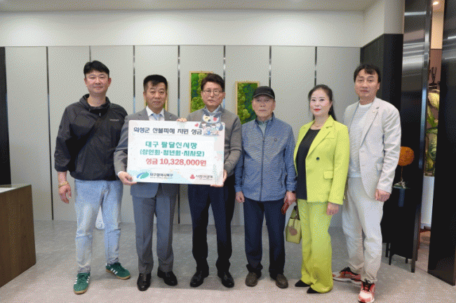 [NWS¹æ¼Û=Çѽ¸ñ ±âÀÚ]´ë±¸ ÆÈ´Þ½Å½ÃÀå »óÀÎȸ¡¤Ã»³âȸ¡¤½ÃÀåÀ» »ç¶ûÇÏ´Â ¸ðÀÓ¿¡¼­´Â 4¿ù 17ÀÏ ÀǼº±º »êºÒÇÇÇØ ÁÖ¹ÎÀ» À§ÇÑ ÀÚü ¸ð±Ý Ȱµ¿À» ÅëÇØ ¸ð¾ÆÁø ¼º±Ý 10,328,000¿øÀ» ´ë±¸ ºÏ±¸Ã»¿¡ ±âŹÇß´Ù. À̹ø ¸ð±ÝÀº ´ë±¸ ÆÈ´Þ½Å½ÃÀå ¡¦