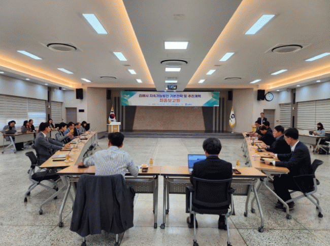 [NWS¹æ¼Û=Çѽ¸ñ ±âÀÚ]±èÇØ½Ã´Â 18ÀÏ ½Ãû ´ëȸÀǽǿ¡¼­ ¡®Áö¼Ó°¡´É¹ßÀü ±âº»Àü·« ¹× ÃßÁø°èȹ ¼ö¸³ ¿¬±¸ ¿ë¿ª¡¯ ÃÖÁ¾º¸°íȸ¸¦ °³ÃÖÇß´Ù. º¸°íȸ¿¡´Â ½ÃÀÇ¿ø, ±èÇØ½ÃÁö¼Ó°¡´É¹ßÀüÀ§¿øÈ¸ À§¿ø, ±èÇØ½ÃÁö¼Ó°¡´É¹ßÀüÇùÀÇȸ ȸ¿ø ¹× °ü°è °ø¡¦