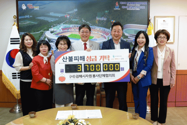 [NWS¹æ¼Û=Çѽ¸ñ ±âÀÚ] ±èÇØ½ÃÀÚ¿øºÀ»ç´ÜüÇùÀÇȸ(ȸÀå ÀÓ¿µÅÃ)´Â ÃÖ±Ù »êºÒ ÇÇÇØ·Î ÅÍÀüÀ» ÀÒÀº ¿µ³²Áö¿ª ÀÌÀç¹ÎµéÀ» µ½±â À§ÇØ 370¸¸¿øÀ» ¸ð±ÝÇØ ±èÇØ½Ã¿¡ Àü´ÞÇß´Ù°í 18ÀÏ ¹àÇû´Ù. ÇùÀÇȸ ¼Ò¼Ó 28°³ ´Üü ȸ¿øµéÀÌ ÀÌÀç¹ÎÀ» À§ÇØ ¡¦