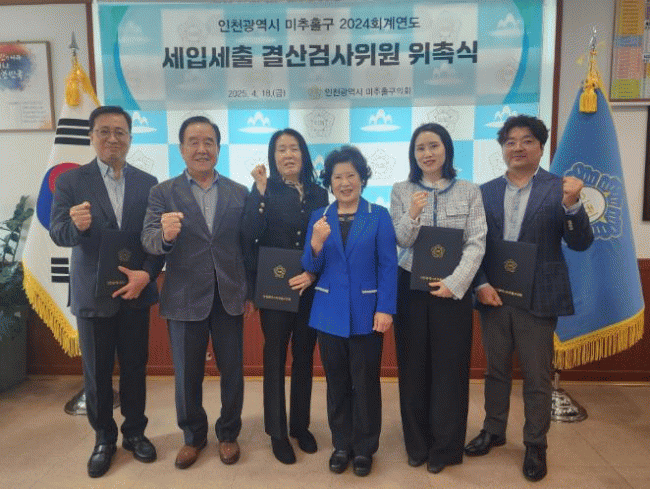 [NWS¹æ¼Û=Çѽ¸ñ ±âÀÚ]ÀÎõ±¤¿ª½Ã ¹ÌÃßȦ±¸ ÀÇȸ´Â 4¿ù 18ÀÏ 2024ȸ°è¿¬µµ °á»ê°Ë»çÀ§¿ø À§Ã˽ÄÀ» °³ÃÖÇϰí, ´ëÇ¥À§¿øÀ» Æ÷ÇÔÇÑ ÃÑ 5¸íÀÇ °á»ê°Ë»çÀ§¿ø¿¡°Ô À§ÃËÀåÀ» ¼ö¿©Çß´Ù. À̹ø¿¡ À§ÃËµÈ °á»ê°Ë»çÀ§¿øÀº ´ëÇ¥À§¿øÀÎ ¹è»ó·Ï ÀÇ¿øÀ»¡¦