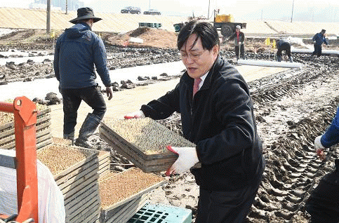 [NWS¹æ¼Û=Çѽ¸ñ ±âÀÚ]¹Ú¿ëö °­È­±º¼ö°¡ Áö³­ 16ÀÏ ¿µ³óöÀ» ¸Â¾Æ ¼±¿ø¸é ⸮ ¸øÀÚ¸® ¼³Ä¡ ³ó°¡¸¦ ¹æ¹®ÇØ Á÷Á¢ ¸ðÆÇ ÀÛ¾÷À» ÇÏ¸ç ³ó¾÷Àεé°ú ¼ÒÅëÇß´Ù. ¹Ú ±º¼ö´Â ³ó¾÷Àεé°ú º±¾¾°¡ ÆÄÁ¾µÈ ¸ðÆÇÀ» ³í¿¡ ¼³Ä¡ÇÏ´Â ÀÛ¾÷À» ÇÔ²² ÁøÇàÇÏ¡¦
