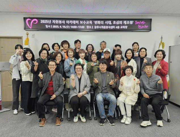 [NWS¹æ¼Û=Çѽ¸ñ ±âÀÚ]»ç´Ü¹ýÀÎ ±¤ÁÖ½ÃÀÚ¿øºÀ»ç¼¾ÅÍ´Â 4¿ù 16ÀÏ 30¿© ¸íÀÇ ÀÚ¿øºÀ»çÀÚµéÀÌ Âü¼®ÇÑ °¡¿îµ¥ ÀÚ¿øºÀ»ç ¾ÆÄ«µ¥¹Ì ¡®º¯È­ÀÇ ½Ã´ë, ÃʽÉÀÇ ÀçÁ¶¸í¡¯À» °³ÃÖÇß´Ù. À̹ø ±³À°Àº ¿À·£ ±â°£ Áö¿ª»çȸ¿Í ÀÚ¿øºÀ»ç Ȱ¼ºÈ­¸¦ À§ÇØ Çå½Å¡¦