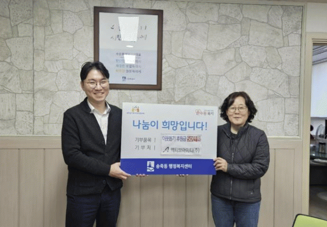 [NWS¹æ¼Û=Çѽ¸ñ ±âÀÚ]¼ö¿ø½Ã Àå¾È±¸ ¼ÛÁ×µ¿´Â Áö³­ 22ÀÏ °ü³» ¼ÒÀç ¢ß¿¢Æ¼ºê¾ÆÀÌÆ¼°¡ ¿¬¸»À» ¸Â¾Æ ¾î·Á¿î ÀÌ¿ôÀ» µ½±â À§ÇÑ ÈÄ¿ø±Ý 50¸¸¿øÀ» ±âŹÇß´Ù°í ¹àÇû´Ù. À̹ø ±âŹÀº Áö¿ª»çȸ¿Í »ó»ýÇÏ´Â ³ª´® ¹®È­ È®»êÀ» À§ÇØ ¸¶·ÃµÈ °ÍÀ¸·Î¡¦