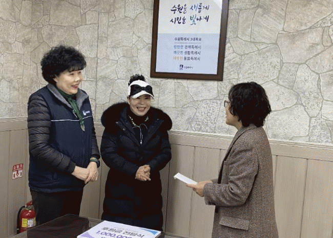 [»çȸ] ¼ö¿ø½Ã Àå¾È±¸ ¼ÛÁ×µ¿, ¸¸¼®°ø¿ø °ü¸®»ç¹«¼Ò·ÎºÎÅÍ ÀÌ¿ô ³ª´® ¼º±Ý 100¸¸¿ø ±âºÎ¹Þ¾Æ |2025. 12.23