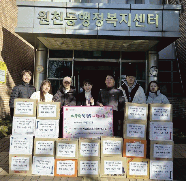 [NWS¹æ¼Û=Çѽ¸ñ ±âÀÚ]Áö³­ 22ÀÏ, ½Ã¸³±¤±³¾ÆÀÌÆÄÅ©¾î¸°ÀÌÁý´Â ¿øÃµµ¿ÇàÁ¤º¹Áö¼¾ÅÍ¿¡ Àú¼Òµæ Ãë¾à°èÃþÀ» À§ÇÑ ¶ó¸é 700°³¸¦ Àü´ÞÇÏ¸ç µû¶æÇÑ ³ª´®À» ½ÇõÇß´Ù. À̹ø¿¡ Àü´ÞµÈ ¶ó¸éÀº ¾î¸°ÀÌÁý Çкθð¿Í ±³Á÷¿øµéÀÌ ÀÚ¹ßÀûÀ¸·Î Âü¿©ÇØ ¸ð¡¦