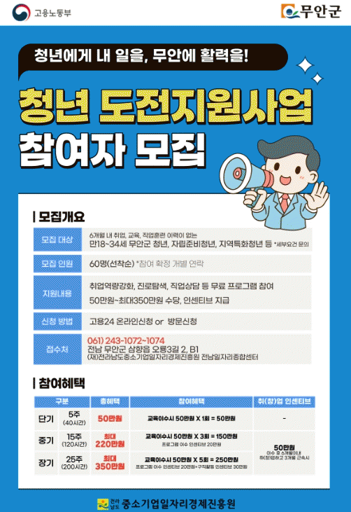 [°æÁ¦] ¹«¾È±º, û³âµµÀüÁö¿ø»ç¾÷ Âü¿©ÀÚ ¸ðÁý |2025. 04.18