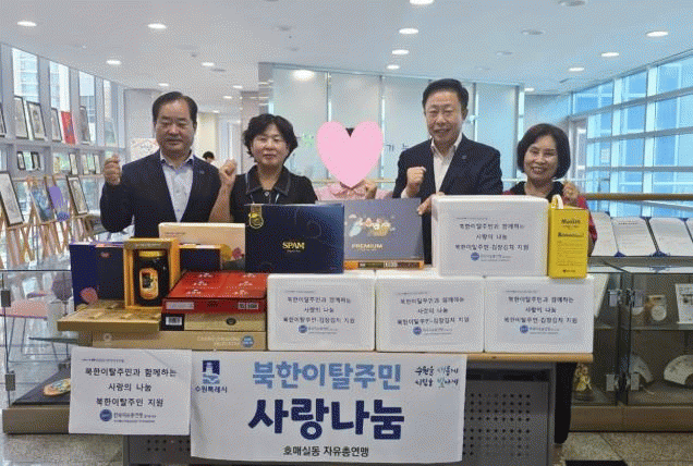 [NWS¹æ¼Û=Çѽ¸ñ ±âÀÚ]¼ö¿ø½Ã ±Ç¼±±¸ È£¸Å½Çµ¿ Çѱ¹ÀÚÀ¯ÃÑ¿¬¸ÍÀº Áö³­ 22ÀÏ, Ãß¼®À» ¾ÕµÎ°í °ü³» ºÏÇÑÀÌÅ»Áֹο¡°Ô ¸íÀý ¼±¹°À» Àü´ÞÇß´Ù. À̳¯Àº È£¸Å½Çµ¿ ÇàÁ¤º¹Áö¼¾ÅÍ¿¡¼­ Çѱ¹ÀÚÀ¯ÃÑ¿¬¸Í À§¿øµé°ú È£¸Å½Çµ¿ °ü°èÀÚµéÀº ºÏÇÑÀÌÅ»ÁֹΡ¦