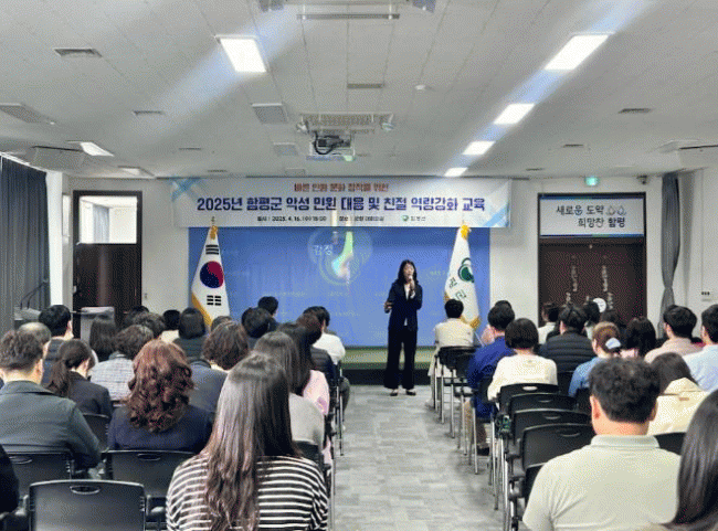 [NWS¹æ¼Û=Çѽ¸ñ ±âÀÚ] Àü³² ÇÔÆò±ºÀÌ ¹Î¿ø ÀÀ´ë ¿ª·® Çâ»ó°ú ¹Ù¸¥ ¹Î¿ø ¹®È­ Á¤ÂøÀ» À§ÇØ Àü Á÷¿øÀ» ´ë»óÀ¸·Î ¾Ç¼º¹Î¿ø ´ëÀÀ ¹× Ä£Àý ±³À°À» ½Ç½ÃÇß´Ù. ÇÔÆò±ºÀº 18ÀÏ ¡°2025³â ¾Ç¼º¹Î¿ø ´ëÀÀ ¹× Ä£Àý ¿ª·® °­È­ ±³À°ÀÌ Áö³­ 16ÀÏ ±ºÃ»¡¦
