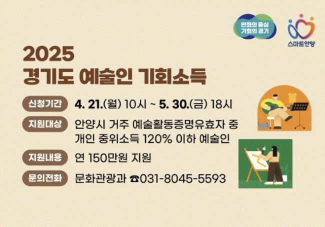 [»çȸ] ¾È¾ç½Ã, ´ÙÀ½´Þ 30ÀϱîÁö '°æ±âµµ ¿¹¼úÀÎ ±âȸ¼Òµæ' Á¢¼ö |2025. 04.18