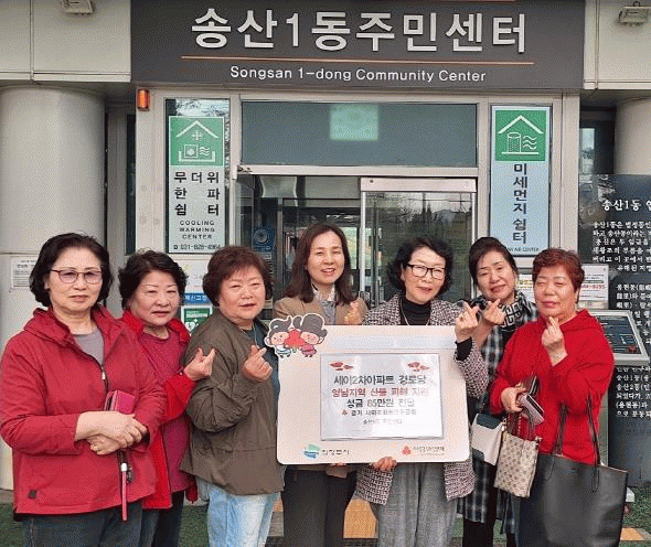 [NWS¹æ¼Û=Çѽ¸ñ ±âÀÚ]ÀÇÁ¤ºÎ½Ã ¼Û»ê1µ¿Áֹμ¾ÅÍ´Â ¿ëÇöµ¿ ¼¼¾Æ2Â÷¾ÆÆÄÆ® °æ·Î´ç ȸ¿øµéÀÌ ¿µ³²Áö¿ª »êºÒÇÇÇØ Áö¿øÀ» À§ÇØ ¼º±Ý 85¸¸ ¿øÀ» ±âŹÇß´Ù°í ¹àÇû´Ù. À̹ø ¼º±ÝÀº °©ÀÛ½º·¯¿î »êºÒ·Î ÀÎÇØ »îÀÇ ÅÍÀüÀ» ÀÒÀº ÀÌÀç¹Îµé¿¡°Ô µµ¿ò¡¦