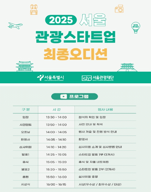 [NWS¹æ¼Û=ÇãÀº¼­ ±âÀÚ]¼­¿ï½Ã¿Í ¼­¿ï°ü±¤Àç´ÜÀÌ ¼­¿ï °ü±¤ ÆíÀÇ Çõ½ÅÀ» À̲ø ¡®2025 ¼­¿ï °ü±¤»õ½Ï±â¾÷(½ºÅ¸Æ®¾÷) Çù·ÂÇÁ·ÎÁ§Æ® ÃÖÁ¾¿Àµð¼Ç¡¯À» 16ÀÏ 17½Ã¿¡ ÁøÇàÇϰí ÃÖÁ¾ »óÀ§ 5°³ À¯¸Á±â¾÷À» ¼±Á¤Çß´Ù. º» ÇÁ·ÎÁ§Æ®´Â Áö³­ ¡¯16³âºÎ¡¦