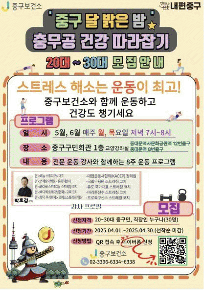 [»çȸ] 20~30´ë ¼­¿ï Áß±¸¹ÎÀ» À§ÇÑ 'Áß±¸ ´Þ ¹àÀº ¹ã'¿¡ Ãæ¹«°ø °Ç°­ µû¶óÀâ±â |2025. 04.18