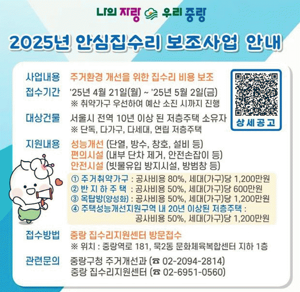 [»çȸ] Áß¶û±¸, ³°Àº Áý »õ ´ÜÀå µ½´Â´Ù...2025 ¾È½É Áý¼ö¸® º¸Á¶»ç¾÷ ½Ç½Ã |2025. 04.18