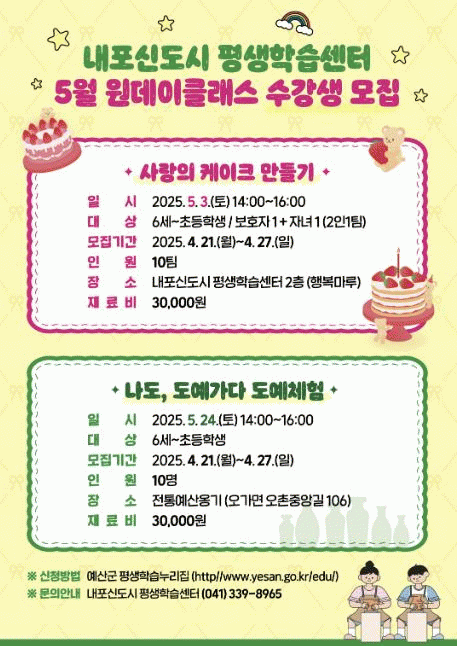 [»çȸ] ¿¹»ê±º ³»Æ÷½Åµµ½Ã Æò»ýÇнÀ¼¾ÅÍ, 5¿ù ¿øµ¥ÀÌ Å¬·¡½º ¿î¿µ |2025. 04.18