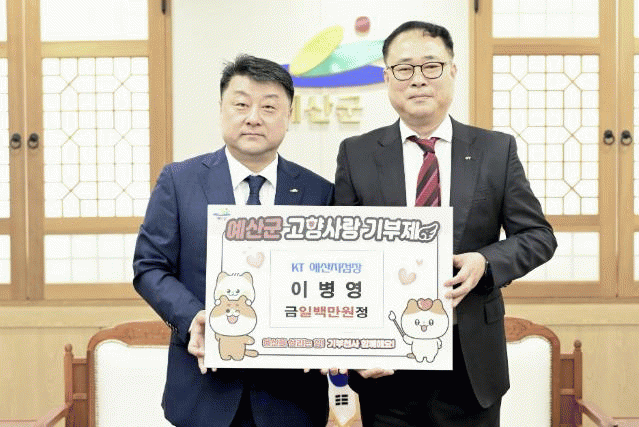 [»çȸ] ¿¹»ê±º, KT¿¹»êÁöÁ¡Àå¿¡°Ô °íÇâ»ç¶û±âºÎ±Ý ±âŹ ¹Þ¾Æ |2025. 04.18