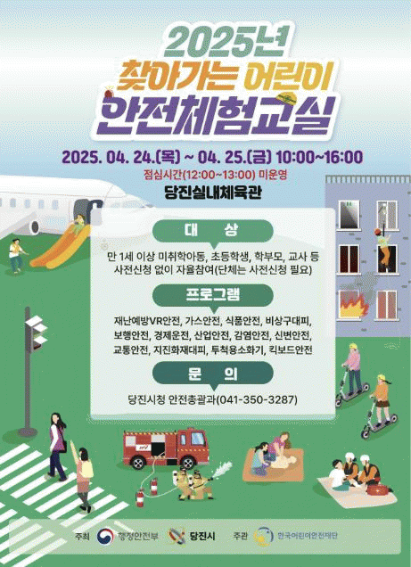 [NWS¹æ¼Û=Çѽ¸ñ ±âÀÚ]´çÁø½Ã´Â ¿À´Â 24Àϰú 25ÀÏ ÀÌÆ²°£ ´çÁø½Ç³»Ã¼À°°ü¿¡¼­ '2025 ã¾Æ°¡´Â ¾î¸°ÀÌ ¾ÈÀüüÇè±³½Ç'À» ¿î¿µÇÑ´Ù°í 18ÀÏ ¹àÇû´Ù. À̹ø Çà»ç´Â ¸¸ 1¼¼ ÀÌ»ó ¹ÌÃëÇÐ ¾Æµ¿ºÎÅÍ ÃʵîÇлý, Çкθð, Á÷ÀåÀÎ µî ´çÁø½Ã¹ÎÀ̶ó¸é ´©¡¦