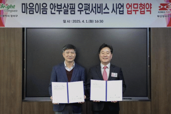 [NWS¹æ¼Û=Çѽ¸ñ ±âÀÚ]ºÎ»ê °­¼­±¸´Â ÇàÁ¤¾ÈÀüºÎ ÁÖ°ü ¡®2025³â ¾ÈºÎ»ìÇË ¿ìÆí¼­ºñ½º »ç¾÷¡¯ °ø¸ð¿¡ ÃÖÁ¾ ¼±Á¤µÆ´Ù°í 4¿ù 17ÀÏ ¹àÇû´Ù. ¡®¾ÈºÎ»ìÇË ¿ìÆí¼­ºñ½º »ç¾÷¡¯Àº ¿ìü±¹ Áý¹è¿øÀÌ Á¤±âÀûÀ¸·Î »çȸÀû °í¸³ ¿ì·Á°¡ ÀÖ´Â 1ÀÎ °¡±¸, ¡¦