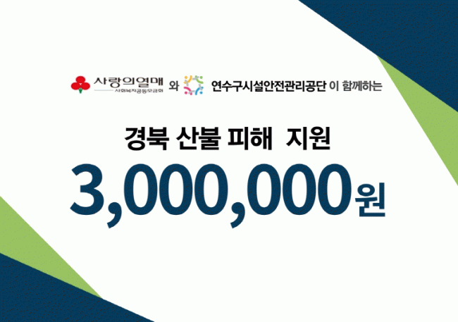 [NWS¹æ¼Û=Çѽ¸ñ ±âÀÚ]¿¬¼ö±¸½Ã¼³¾ÈÀü°ü¸®°ø´ÜÀº ÃÖ±Ù ¹ß»ýÇÑ °æºÏ Áö¿ª »êºÒ ÇÇÇØ º¹±¸¸¦ µ½±â À§ÇØ Áö³­ 4¿ù, »çȸº¹Áö°øµ¿¸ð±Ýȸ¸¦ ÅëÇØ 300¸¸ ¿øÀÇ ¼º±ÝÀ» ±âºÎÇß´Ù°í ¹àÇû´Ù. À̹ø ±âºÎ±Ý »êºÒ·Î °íÅë¹ÞÀº ÀÌÀç¹ÎÀ» µ½°í ÀÀ¿øÇϰíÀÚ¡¦