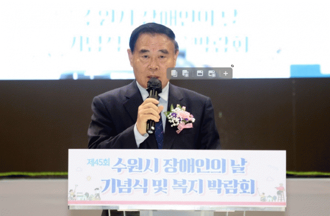 [NWS¹æ¼Û=Çѽ¸ñ ±âÀÚ]¼ö¿øÆ¯·Ê½ÃÀÇȸ ÀÌÀç½Ä ÀÇÀåÀº 17ÀÏ, ¼ö¿øÁ¾ÇտÀå ½Ç³»Ã¼À°°ü¿¡¼­ ¿­¸°¡®Á¦45ȸ Àå¾ÖÀÎÀÇ ³¯ ±â³ä½Ä ¹× º¹Áö¹Ú¶÷ȸ¡¯¿¡ Âü¼®Çß´Ù. À̹ø Çà»ç¿¡´Â ÀÌÀç½Ä ÀÇÀåÀ» ºñ·ÔÇÏ¿© ¼ö¿øÆ¯·Ê½ÃÀÇȸ ÀÇ¿ø, ´Üü, ½Ã¼³ °ü¡¦