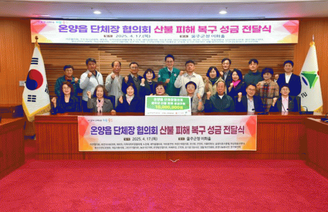 [NWS¹æ¼Û=Çѽ¸ñ ±âÀÚ]¿ï»ê ¿ïÁÖ±º »êºÒ ÇÇÇØ º¹±¸ ¹× ÀÌÀç¹Î Áö¿øÀ» À§ÇØ °¢°è°¢Ãþ¿¡¼­ ¼º±Ý Àü´ÞÀÌ À̾îÁö°í ÀÖ´Ù. ¿ïÁÖ±ºÀº 17ÀÏ ±ºÃ»¿¡¼­ À̼ø°É ±º¼ö¿Í °¢ ±âºÎÀÚ°¡ Âü¼®ÇÑ °¡¿îµ¥ ¼º±Ý Àü´Þ½ÄÀ» °¡Á³´Ù. ¿Â¾çÀ¾ ´ÜüÀåÇùÀÇȸ(°¡¡¦