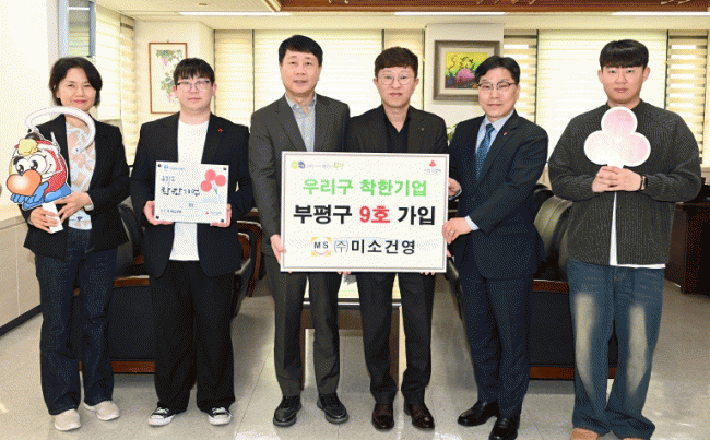 [NWS¹æ¼Û=Çѽ¸ñ ±âÀÚ]ºÎÆò±¸´Â ¢ß¹Ì¼Ò°Ç¿µÀÌ ¡®¿ì¸®±¸ ÂøÇѱâ¾÷¡¯ 9È£·Î °¡ÀÔÇß´Ù°í 17ÀÏ ¹àÇû´Ù. ºÎÆò ºÎ°³µ¿ ¼ÒÀç ¢ß¹Ì¼Ò°Ç¿µÀº Á¤º¸Åë½Å¡¤Àü±â¡¤¼Ò¹æ°ø»ç Àü¹®±â¾÷ÀÌ´Ù. Áö¿ª»çȸ ¹ßÀü°ú ÁֹΠº¹Áö Çâ»ó¿¡ ±â¿©ÇÏ´Â ´Ù¾çÇÑ È°µ¿À» ÀÌ¡¦