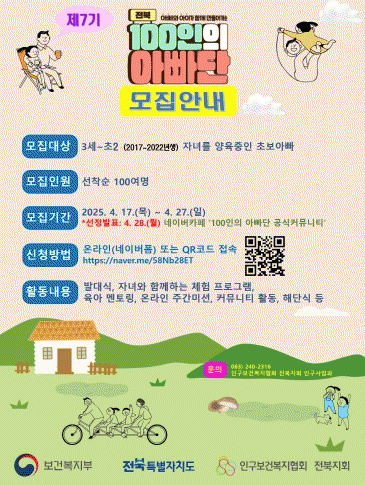 [NWS¹æ¼Û=Çѽ¸ñ ±âÀÚ]ÀüºÏƯº°ÀÚÄ¡µµ°¡¡®Á¦7±â ÀüºÏ 100ÀÎÀÇ ¾Æºü´Ü¡¯À» ¸ðÁýÇÑ´Ù. ½Åû ±â°£Àº ¿À´Â 4¿ù 27ÀϱîÁöÀ̸ç, µµ³»¿¡¼­ Àڳฦ ¾çÀ° ÁßÀÎ ¾ÆºüµéÀÇ Àû±ØÀûÀÎ Âü¿©°¡ ±â´ëµÈ´Ù. ¡®100ÀÎÀÇ ¾Æºü´Ü¡¯Àº º¸°Çº¹ÁöºÎ, ÀüºÏƯº°ÀÚÄ¡¡¦