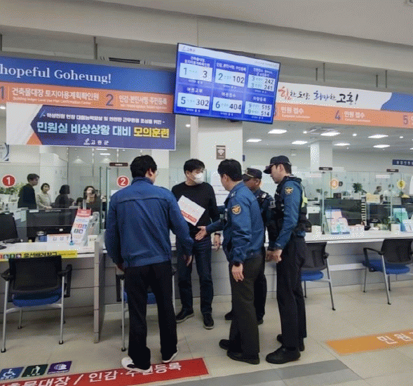 [NWS¹æ¼Û=Çѽ¸ñ ±âÀÚ]°íÈﱺÀº Áö³­ 16ÀÏ ±ºÃ» Á¾Çչοø½Ç¿¡¼­ °íÈï°æÂû¼­¿Í ÇÕµ¿À¸·Î ÃÑ 30¸íÀÌ Âü¿©ÇÑ °¡¿îµ¥ ¹Î¿ø½Ç ºñ»ó»óȲ ´ëºñ ¸ðÀÇÈÆ·ÃÀ» ½Ç½ÃÇß´Ù°í ¹àÇû´Ù. À̹ø ÈÆ·ÃÀº ¹Î¿øÀÎÀÇ Æø¾ð, ÆøÇà µî ºñ»ó »óȲÀ¸·ÎºÎÅÍ ¹Î¿ø´ã´ç ¡¦