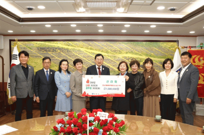 [NWS¹æ¼Û=Çѽ¸ñ ±âÀÚ]2025³â 4¿ù 16ÀÏ, ½Å¶óºÀ»çȸÀÌ °æÁÖ½ÃûÀ» ¹æ¹®ÇÏ¿© ¿µ³²Áö¿ª »êºÒ ÇÇÇØ ÀÌÀç¹ÎÀ» µ½±â À§ÇØ ¼º±Ý 100¸¸¿øÀ» ±âŹÇß´Ù. ½Å¶óºÀ»çȸ´Â °æÁֽà °£ºÎ °ø¹«¿øµéÀÇ ¹è¿ìÀÚ·Î ±¸¼ºµÈ ´Üü·Î, ÅÂdz Èù³²³ë ÇÇÇØ°¡±¸ º¹±¸¡¦