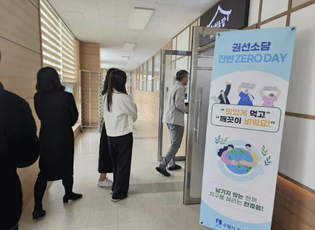 [NWS¹æ¼Û=Çѽ¸ñ ±âÀÚ]¼ö¿ø½Ã ±Ç¼±±¸´Â Áö³­ 17ÀÏ, ±¸³»½Ä´ç¿¡¼­ À½½Ä¹° ¾²·¹±â Àý°¨À» À§ÇØ ¡®ÀÜ¹Ý ¾ø´Â ³¯¡¯À» ¿î¿µÇÏ¿© Á÷¿øµéÀÇ Ä£È¯°æ ½Çõ Âü¿©¸¦ À̾´Ù. ¡®ÀÜ¹Ý ¾ø´Â ³¯¡¯Àº ½Ä»ç ½Ã ³²±âÁö ¾Ê°í ½ÄÆÇÀ» ºñ¿ì´Â ½ÇõÀ» ÅëÇØ À½¡¦