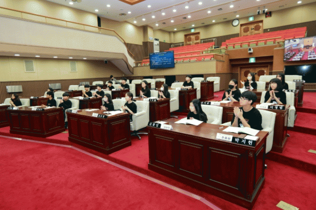 [NWS¹æ¼Û=Çѽ¸ñ ±âÀÚ] ÃæºÏµµÀÇȸ´Â 17ÀÏ º»È¸ÀÇÀå¿¡¼­ ûÁÖ ³²ÆòÃʵîÇб³ Çлý 20¸íÀÌ Âü¿©ÇÑ °¡¿îµ¥ Á¦115ȸ û¼Ò³â ÀÇȸ±³½ÇÀ» ¿î¿µÇß´Ù. û¼Ò³â ÀÇȸ±³½ÇÀº ÇлýµéÀÌ 1ÀÏ µµÀÇ¿øÀÌ µÇ¾î º»È¸ÀÇÀå¿¡¼­ ÀÇÀå ¼±°Å, ¾È°Çó¸®, 2ºÐ ÀÚÀ¯¡¦