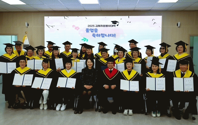 [NWS¹æ¼Û=Çѽ¸ñ ±âÀÚ]±èÁ¦½Ã´Â ±èÁ¦½ÃÀÚ¿øºÀ»ç¼¾ÅÍ(¼¾ÅÍÀå ³²±ÃÇà¿ø)°¡ 17ÀÏ ¼¾ÅÍ ´ëȸÀǽǿ¡¼­¡®2025 ±èÁ¦ÀÚ¿øºÀ»ç´ëÇÐ Á¹¾÷½Ä¡¯À» °³ÃÖÇϸç 2°³¿ù°£ÀÇ ±³À° ¿©Á¤À» ¸¶¹«¸®Çß´Ù°í ¹àÇû´Ù. ¿ÃÇØ·Î 3ȸÂ÷¸¦ ¸ÂÀº ±èÁ¦ÀÚ¿øºÀ»ç´ëÇÐÀº Áö³­¡¦