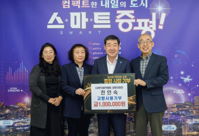 [NWS¹æ¼Û=Çѽ¸ñ ±âÀÚ]ÃæºÏ ÁõÆò±ºÀº (»ç)Çѱ¹À½¾ÇÇùȸ ÁõÆòÁöȸ ÀüÀμ÷ ÁöºÎÀåÀÌ 16ÀÏ ±ºÃ»À» ¹æ¹®ÇØ °íÇâ»ç¶û±âºÎ±Ý 100¸¸¿øÀ» ±âŹÇß´Ù°í ¹àÇû´Ù. Àü ÁöºÎÀåÀº 1998³â ÁõÆòÁßÇб³¿¡ ±Ù¹«Çϸç ÁõÆòÀ½¾ÇÇùȸ¿Í Àο¬À» ¸Î°í, 2015³âºÎÅÍ¡¦