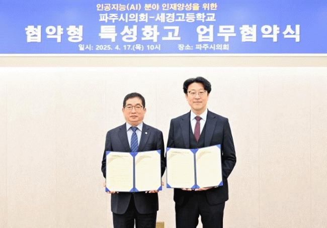 [Áö¿ªÁ¤Ä¡] ÆÄÁÖ½ÃÀÇȸ, ¼¼°æ°íµîÇб³¿Í Çù¾àÇü Ư¼ºÈ­°í ¾÷¹«Çù¾à ü°á |2025. 04.17