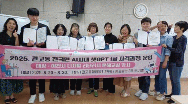 [NWS¹æ¼Û=Çѽ¸ñ ±âÀÚ]ÀÌõ½Ã °ü°íµ¿ ÁÖ¹ÎÀÚġȸ´Â ÀÌõ½Ã µðÁöÅÐ ¸®ÅÍ·¯½Ã °­»ç¸¦ ´ë»óÀ¸·Î êÁöÇÇÆ¼ 1±Þ ÀÚ°Ý °úÁ¤À» ¿î¿µÇÏ¿© 11¸íÀÇ ÇÕ°ÝÀÚ¸¦ ¹èÃâÇß´Ù°í ¹àÇû´Ù. °ü°íµ¿ ÁÖ¹ÎÀÚÄ¡ÇнÀ¼¾ÅÍ´Â Áö³­ 8¿ù Çà¾ÈºÎ¿¡¼­ ¹ßÇ¥ÇÑ Àü ±¹¹Î ÀΡ¦