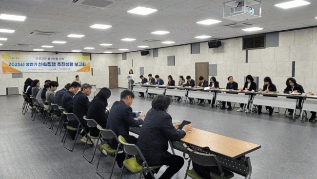 [NWS¹æ¼Û=Çѽ¸ñ ±âÀÚ]ÀÎõ µ¿±¸´Â Áö³­ 16ÀÏ ±¸Ã» ¼Ò³ª¹«È¦¿¡¼­ ¡®2025³âµµ »ó¹Ý±â Áö¹æÀçÁ¤ ½Å¼Ó ÁýÇ࡯ ¸ñÇ¥ ´Þ¼ºÀ» À§ÇÑ ÃßÁø»óȲ º¸°íȸ¸¦ °³ÃÖÇß´Ù°í ¹àÇû´Ù. ±èÁø¼­ ºÎ±¸Ã»ÀåÀÌ ÁÖÀçÇÑ À̹ø º¸°íȸ´Â 26°³°ú ºÎ¼­ÀåÀÌ Âü¼®ÇÏ¿© ¡¦