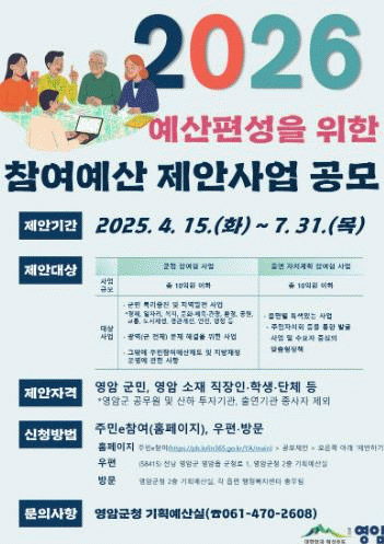 [»çȸ] ¿µ¾Ï±º, 7/31ÀϱîÁö ÁÖ¹ÎÂü¿©¿¹»ê Á¦¾È»ç¾÷ °ø¸ð |2025. 04.17